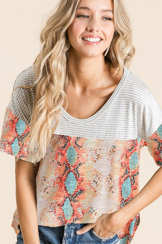 Snakeskin Low Gauge Knit with Contrast Stripe Yoke